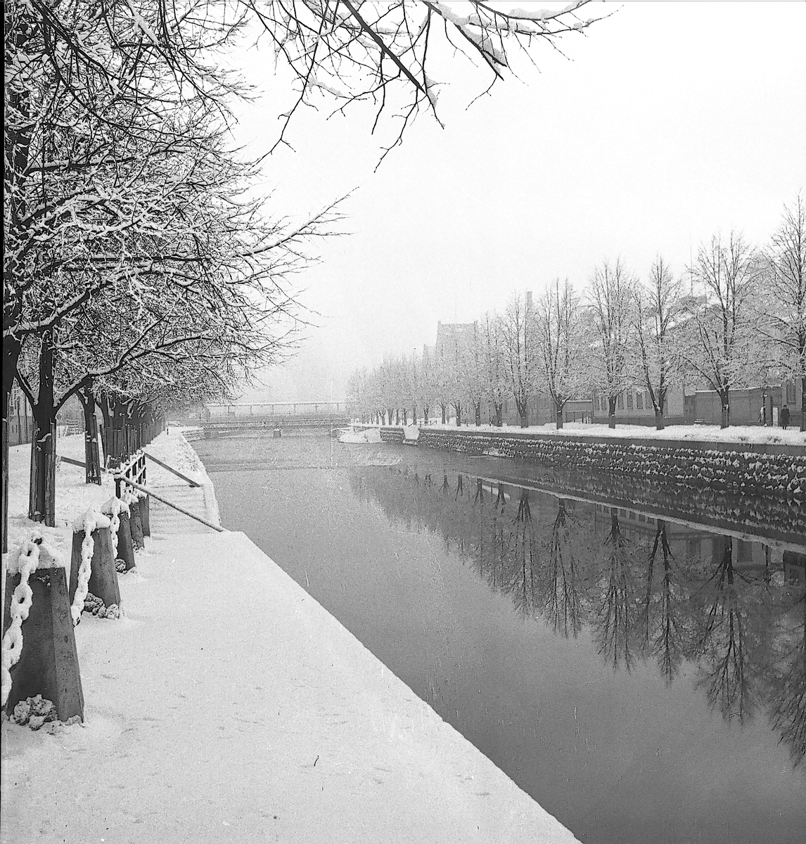 Vinterbild. Gavleån. Norra och Södra Strandgatan.