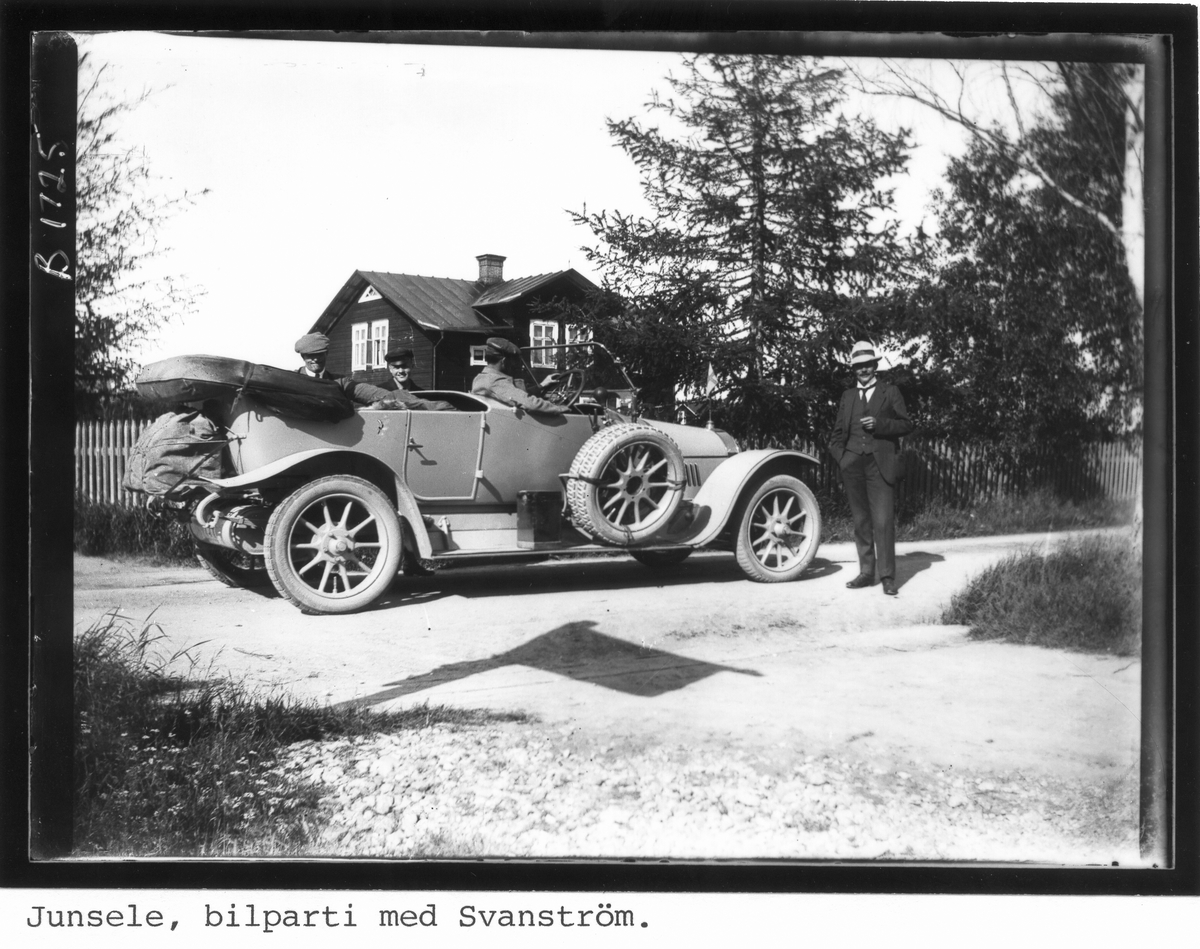 Junsele, bilparti med Svanström. Bilen en Opel Doppel Phaeton 1911-1912.