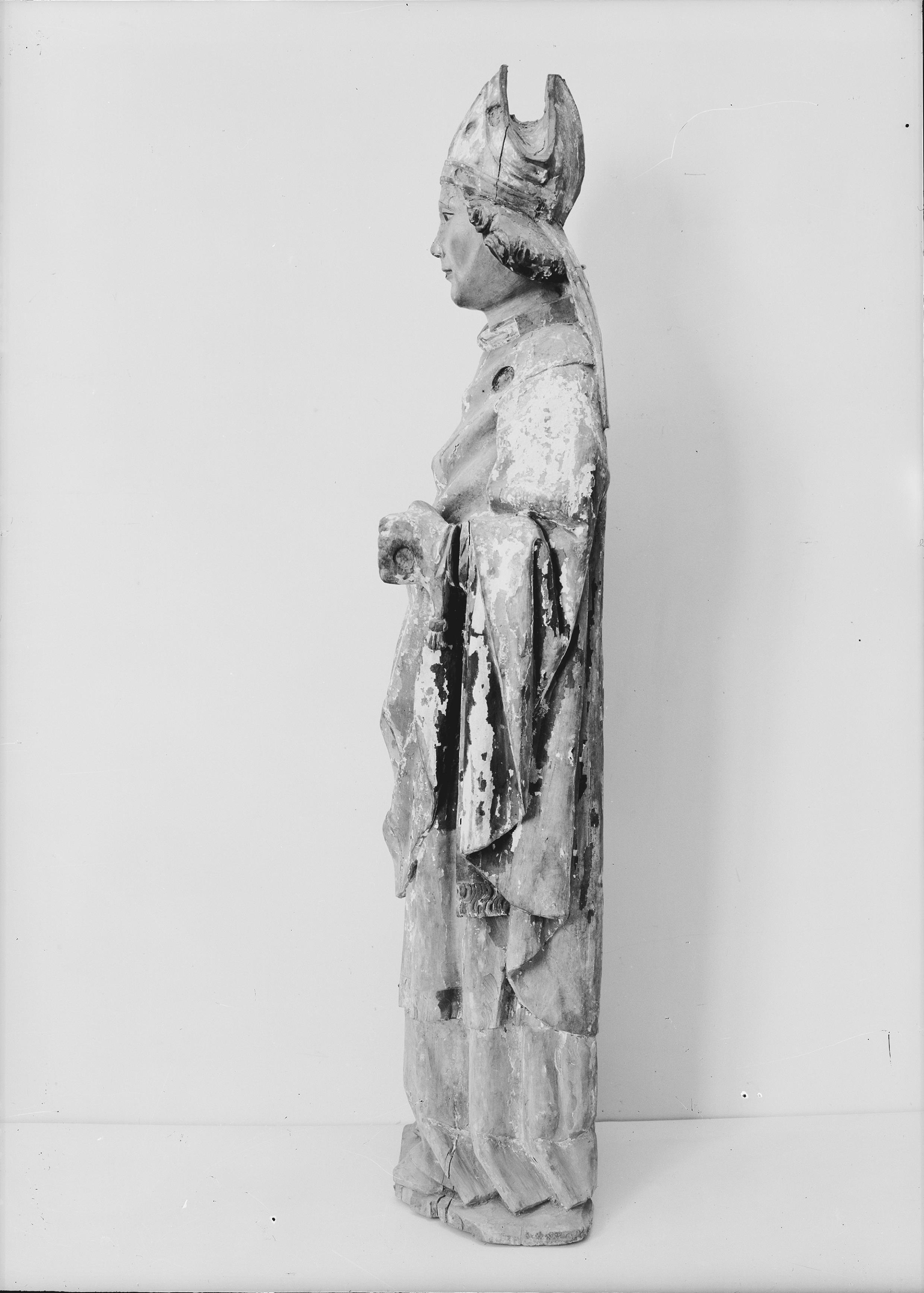 Skulptur, trä, helig biskop, slutet av 1400-talet, i profil.