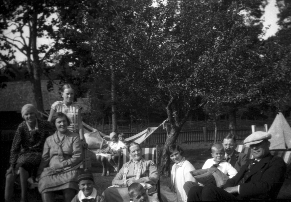 Familjerna samlade på Brämen med Anna Larsdotter Olsson i centrum. Besök av Elna Brundins bror Einar Olsson med familj.