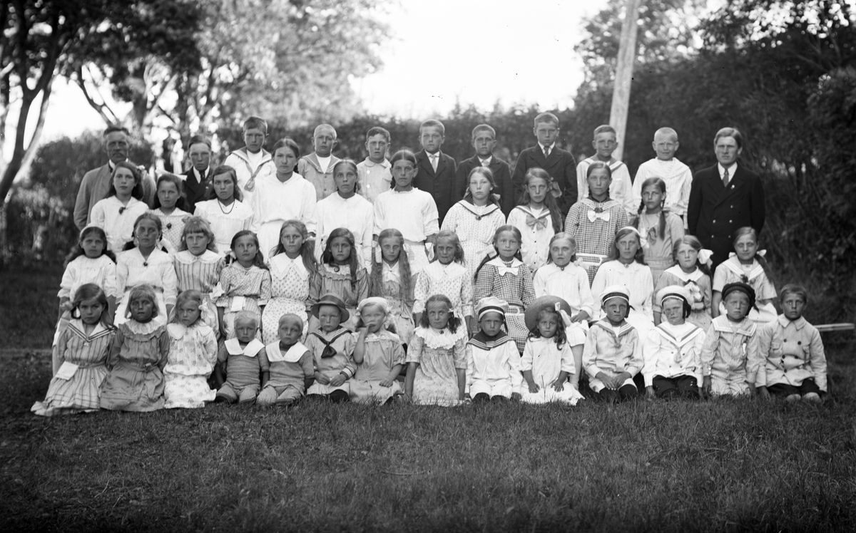 Söndagsskola i Hästbo.Till vänster lärare Anders Strid Ö. Hästbo och till höger lärare Anders Lindström W. Hästbo.