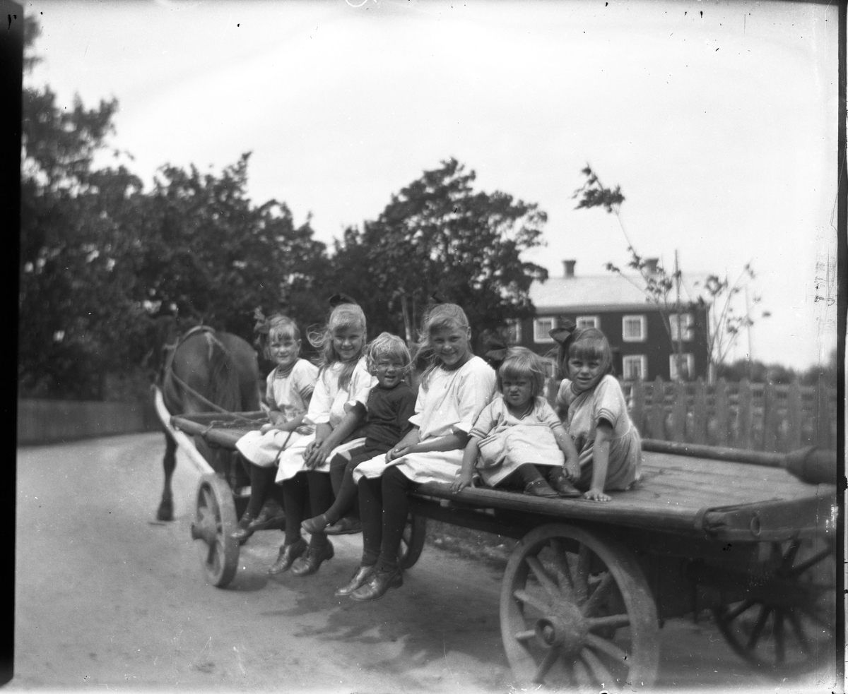 Det här är antagligen i Hemlingby, systrarna Brundin med lekkamrater.