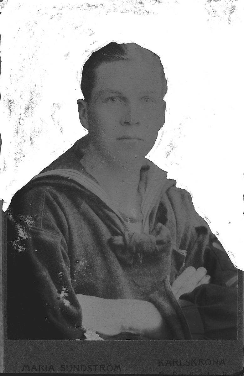 Man fotograferad i Maria Sundströms atelje, Karlskrona. Repro. den 26 mars 1973. Beställt av Fru Norman, Lämmelvägen 2. Gävle.