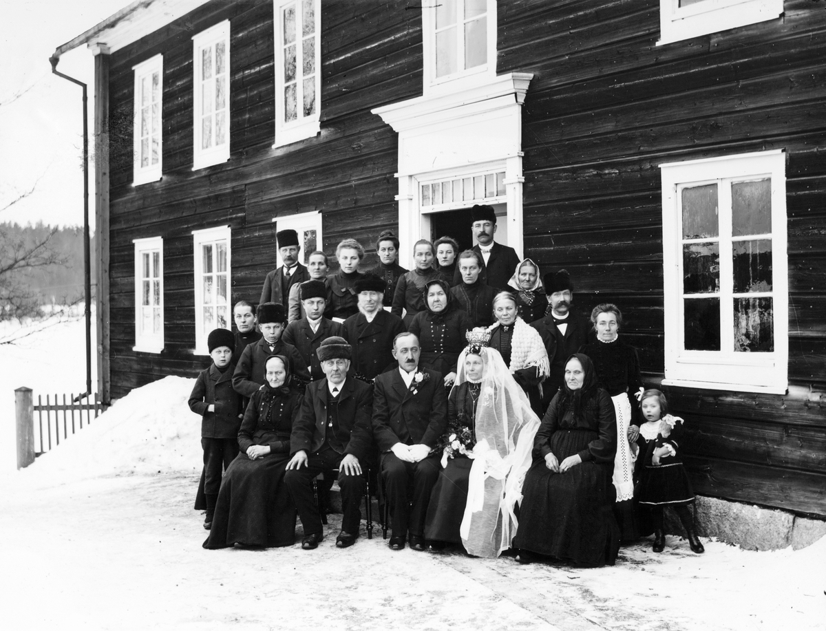 Bröllop i Tönnånger hos Hedlunds. Bruden syster Ingela Norrbom i Skog. Hon är med på bilden liksom maken skräddaren Olof Norrbom.