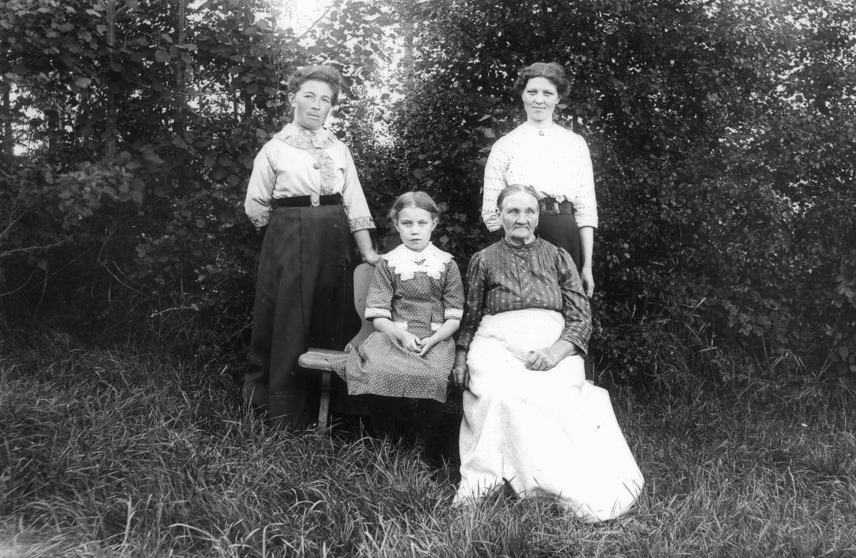 Från vänster: Emma Östberg, Elsa Persson (fosterbarn hos Östbergs), Hilda Lindberg från Hamrånge (mor till Elsa) samt Maria Östberg, "tant Östberg".