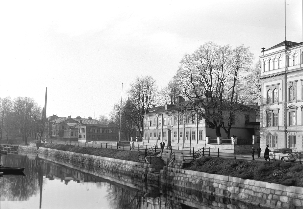Utsikt från Kungsbron mot Norra Strandgatan med bl.a. Berggrenskagården. 30 oktober 1948. Byggnadsnämnden genom arkitekt Lefvert.