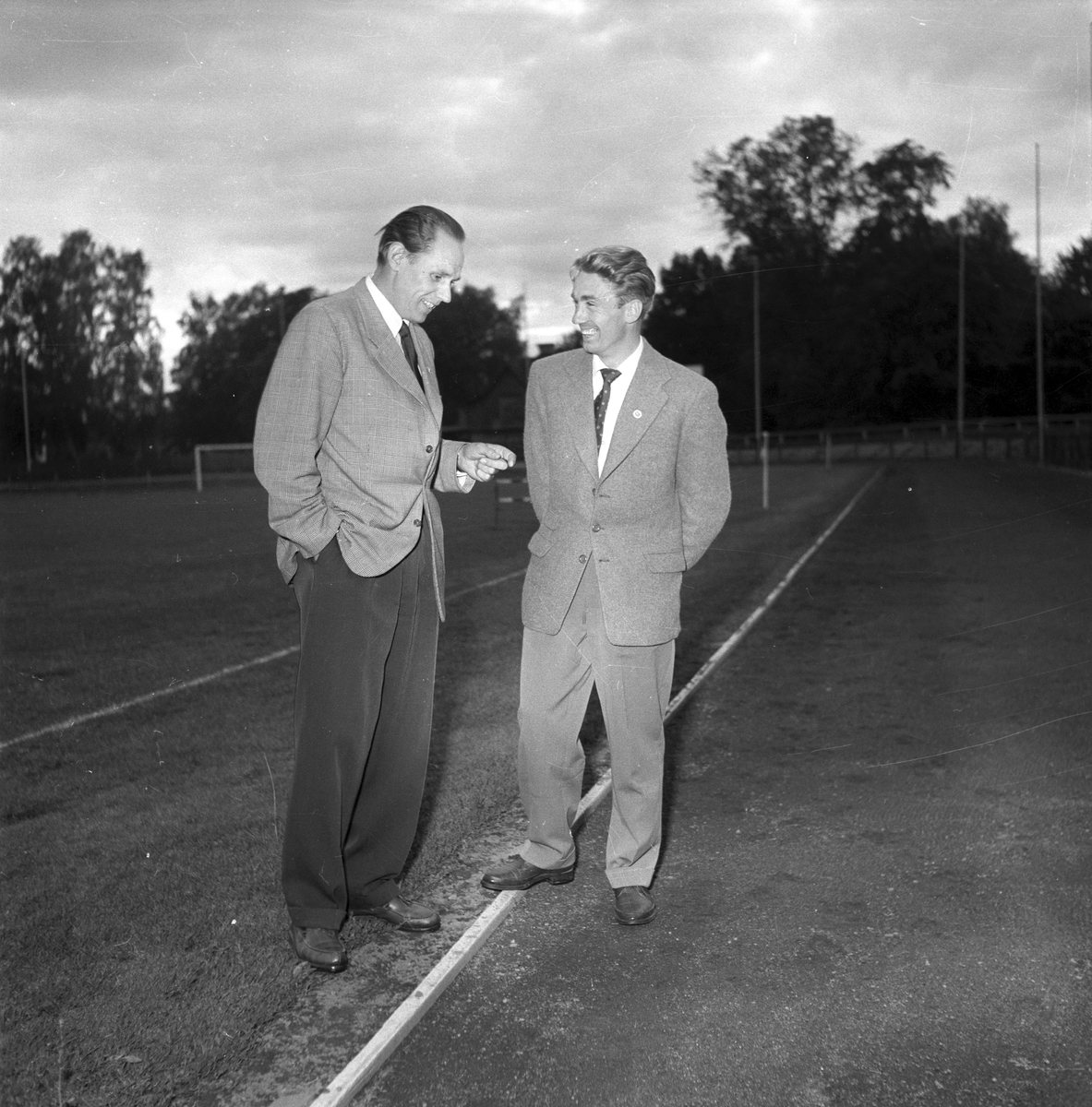 Strömvallen. Augustispelen, Gunder Hägg instruerar. 3 augusti 1953.