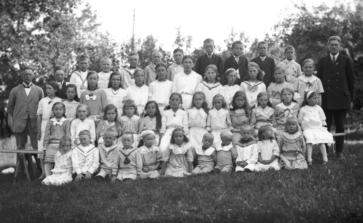 Söndagsskola i Hästbo.Till vänster lärare Anders Strid Ö. Hästbo och till höger lärare Anders Lindström W. Hästbo.