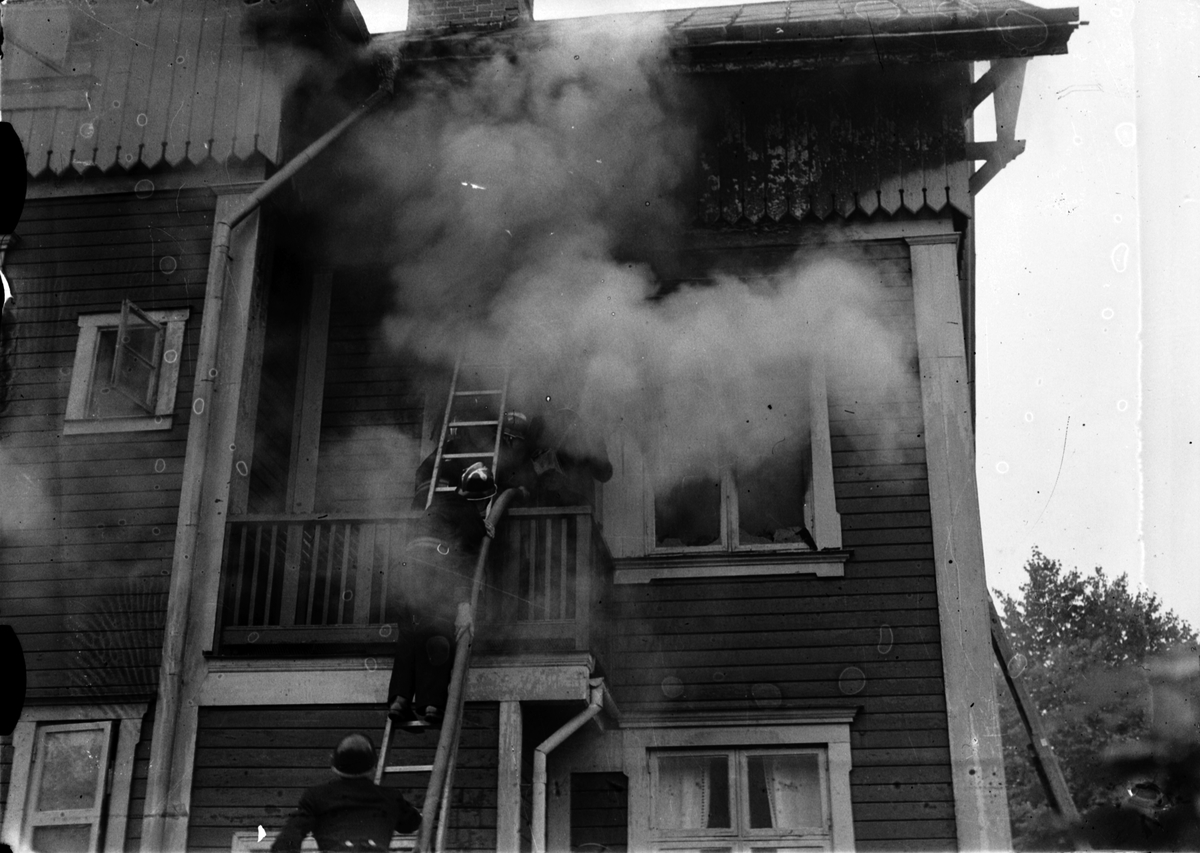 Titel: Reportage för Gefle Dagblad. Eldsvåda på Hantverkargatan