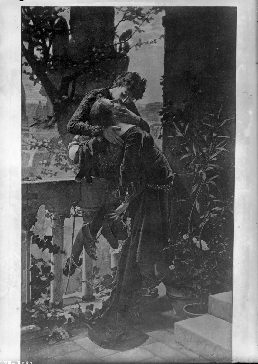 Repro av äldre konstbild med Romeo och Julia-motiv.