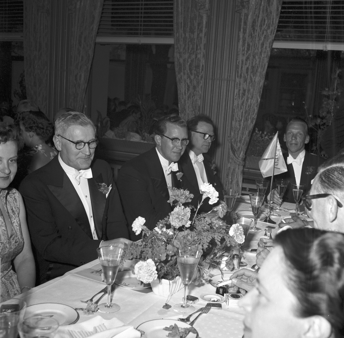 Ahlgrens Tekniska Fabrik AB, 70 årsjubileum. Middag och medaljutdelning på Central Hotellet. 8 juni 1956.