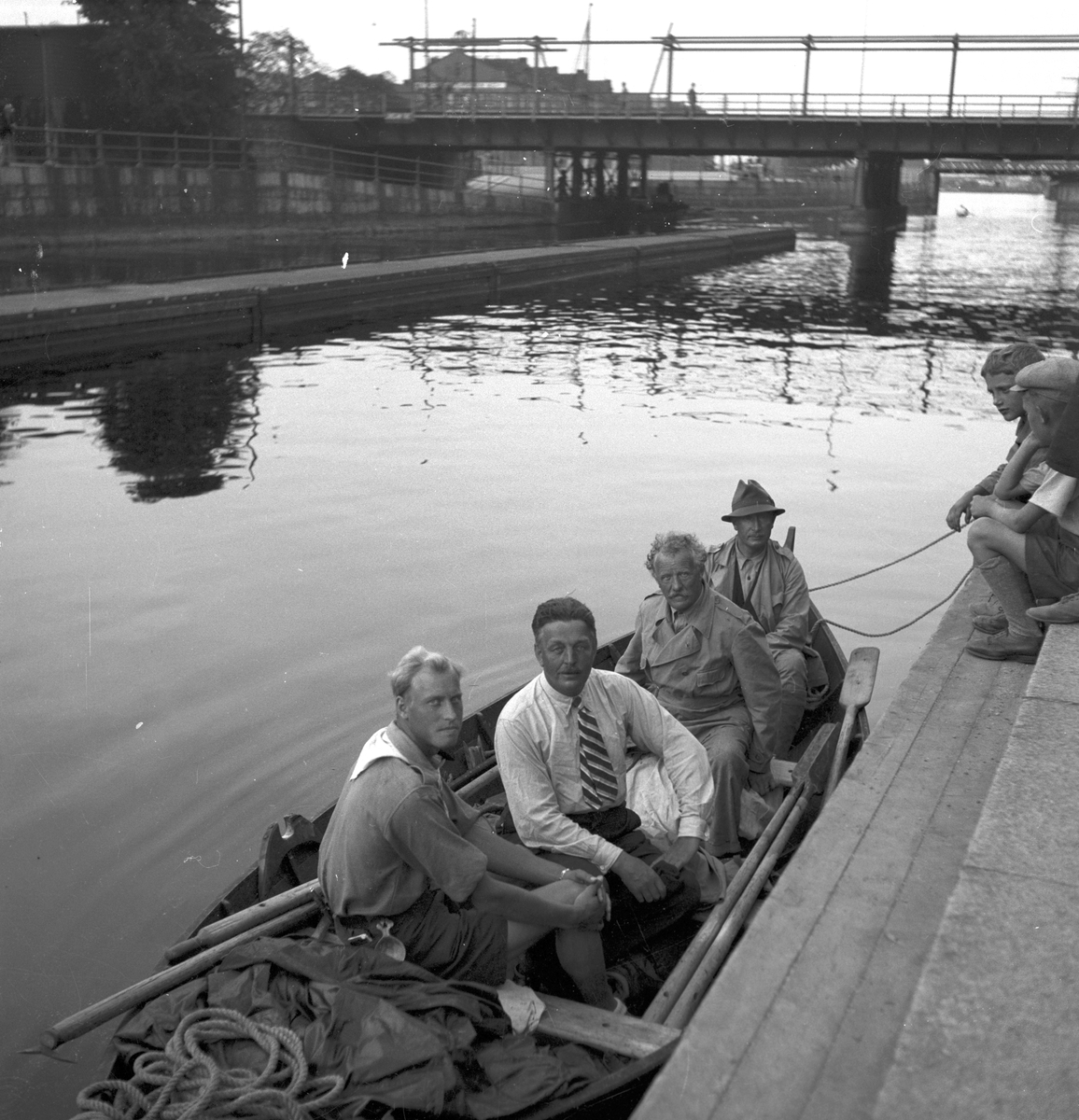 Dalmasar sitter i båt på Gavleån. Reportage för Gefle Dagblad