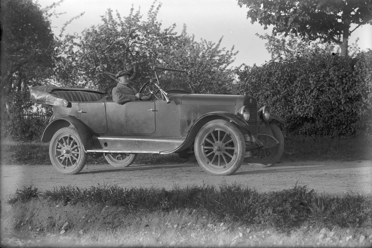 Vid ratten Erik Pettersson, Vilje, Solberga, Toråker, i en Colombia Six 1920, X736,