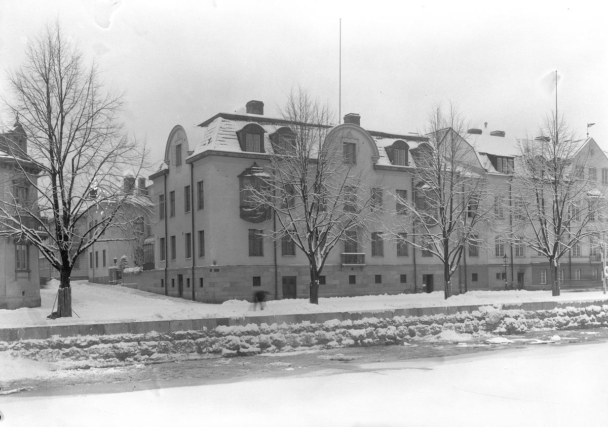 Exteriör av fastighet, ägs av direktör Rolf Zedrén. Februari 1944.