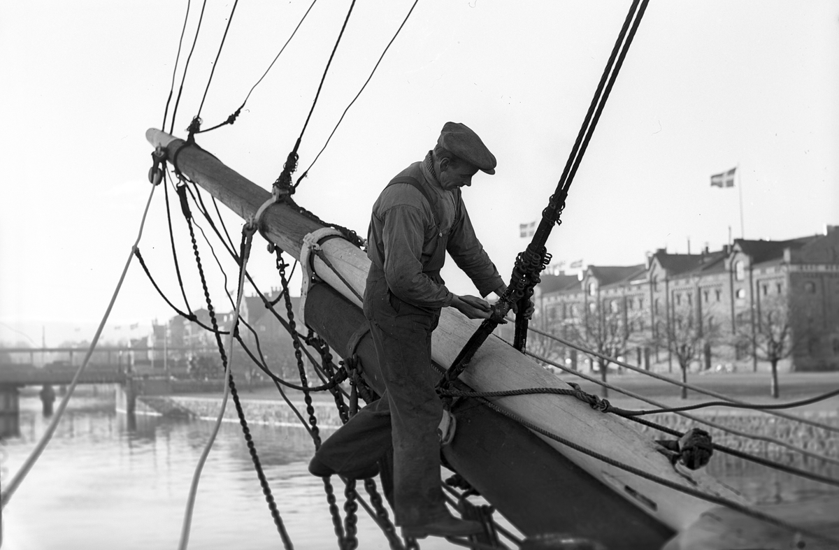 "Briggen Gerda" och vaktmästaren. Reportage för Svenska Dagbladet. Oktober 1947.