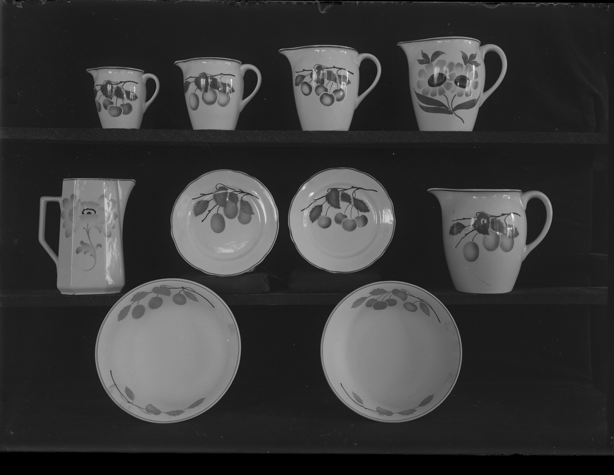 Tillbringare och tallrikar från Gefle Porslinsfabrik.