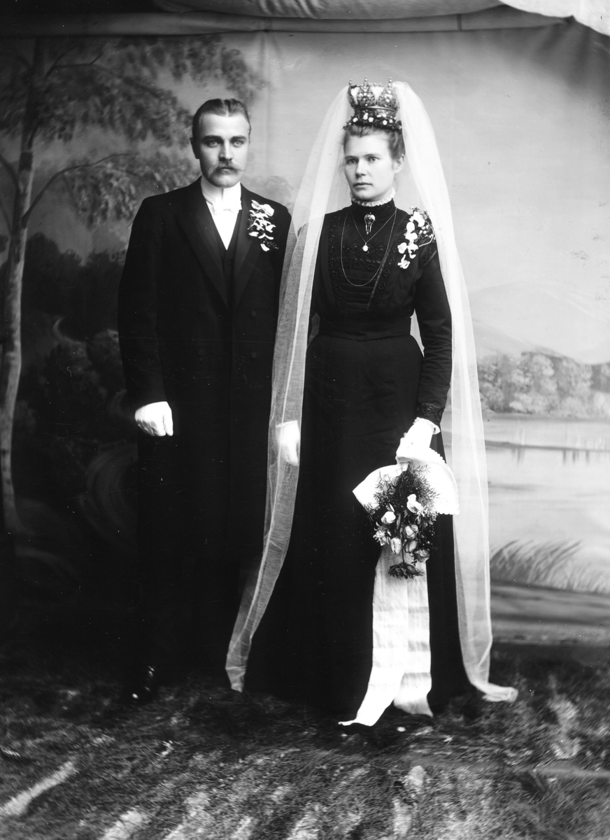 Manne Nygren med fru som brudpar. Bodarne i Skog.