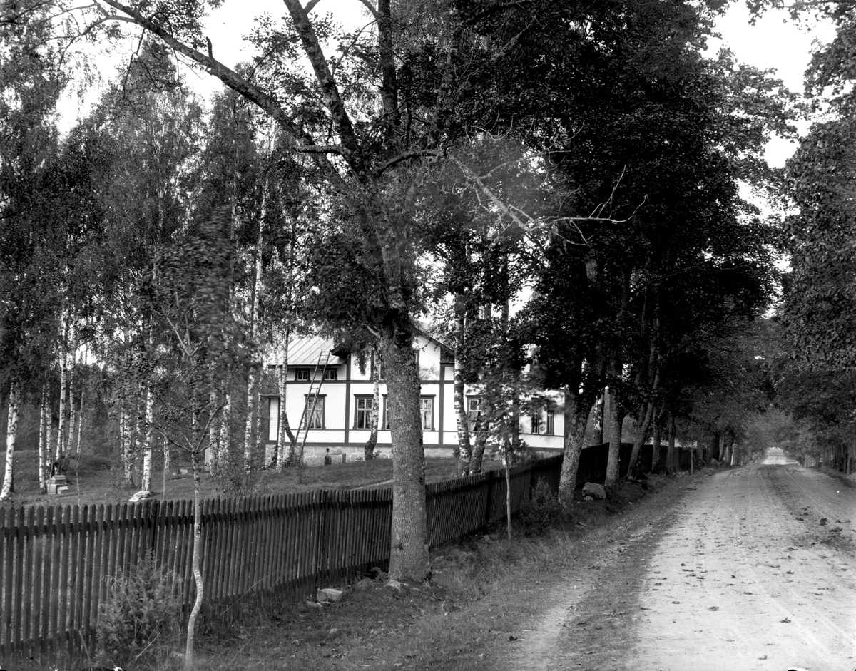 En landsväg och ett vitt bostadshus i Hälsingland.