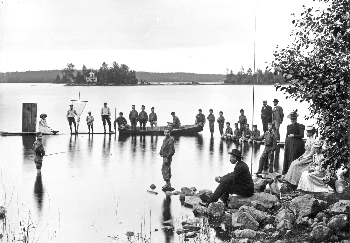 Föreståndare Andersson på Gullgrufva med "skyddslingar" vid sjön Järvsjön.