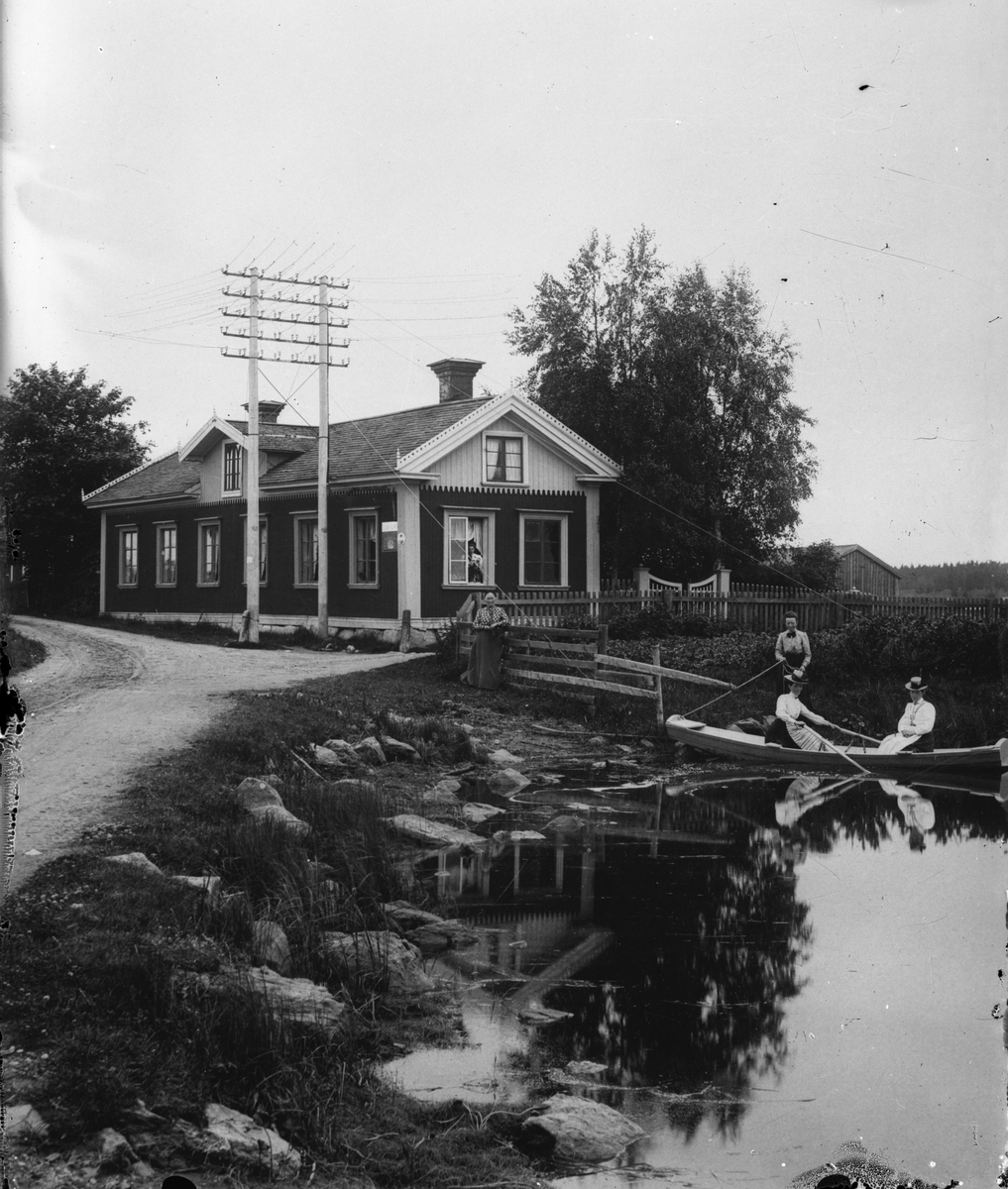 Titel: Clara och Helfrid i båten samt Laura Österberg vid sitt hem i Åbyn, Hamrånge. Eventuellt deras mor som står högre upp. Clara var lärarinna, Laura skötte Hamrånges första telefonväxel.