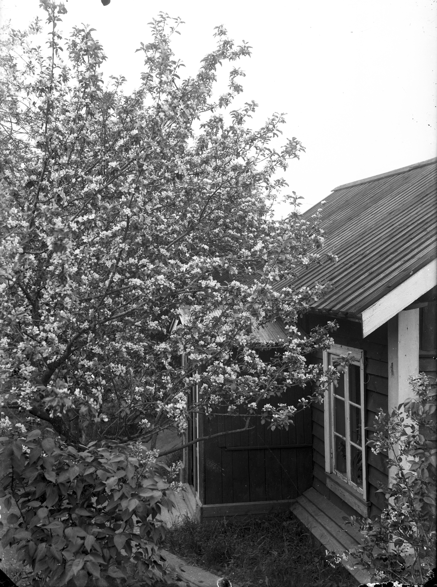 Titel: Hus och trädgård, okänd plats.