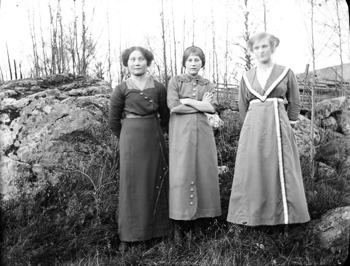 Porträtt av tre unga kvinnor.