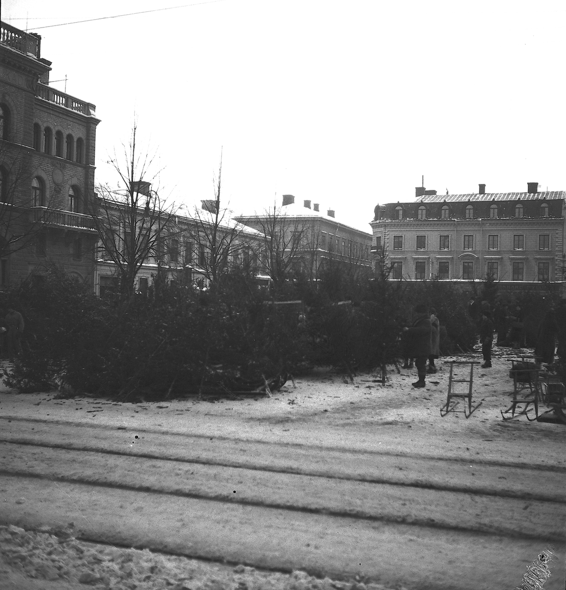 Titel: julgransmarknad på Stortorget 18 december 1942