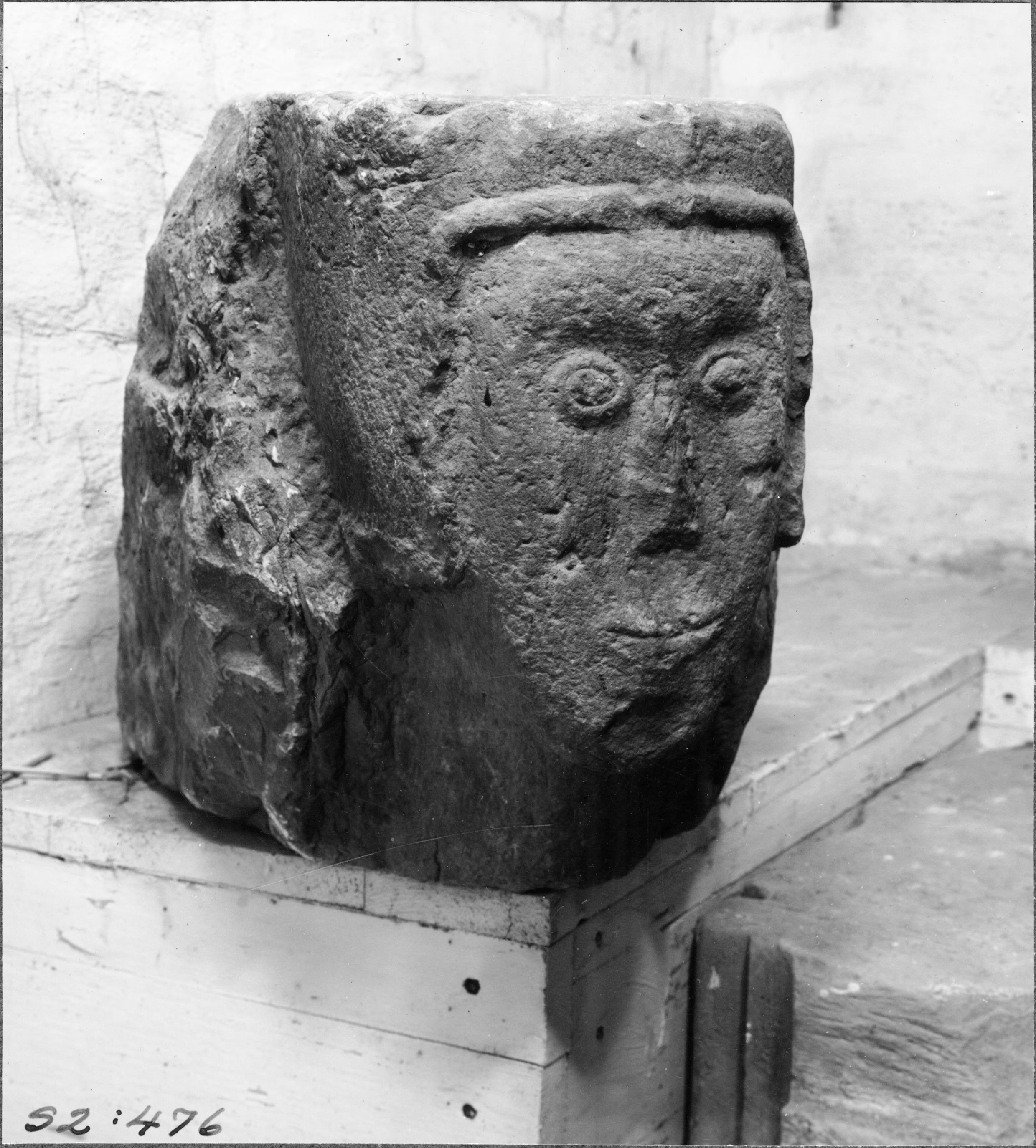 Konsol, huvud, romanskt. Tidigare i stenfot vid Östra Kungshusgatan.