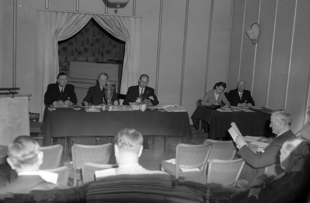 Gävleborgs Läns Sparbank. Styrelsemöte på Hotell Baltic. Maj 1948.
