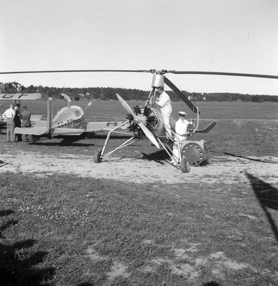Svenska Shell AB fotograferat vid Avans flygfält. 1946. Mitt i bild en autogiro.