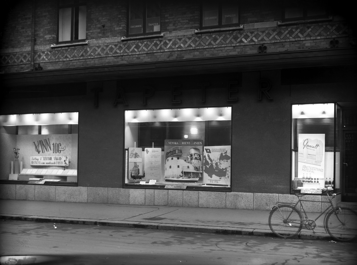 Lindbergs Färghandel skyltfönster. Oktober 1944.