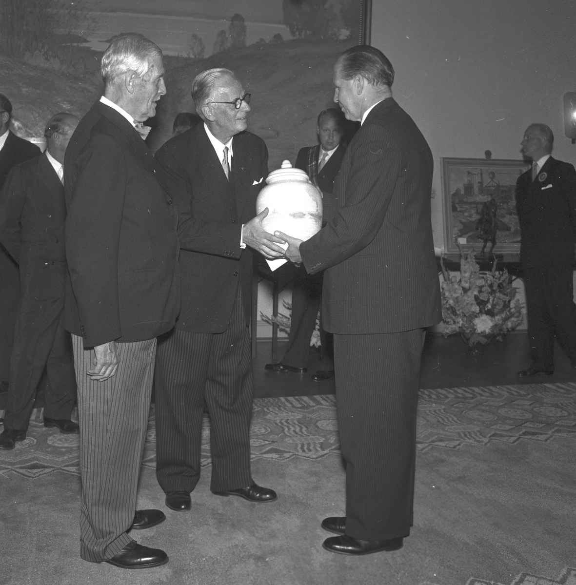 100-årsjubileum. 1855-1955. Korsnäs AB. Överlämnande av en gåva till jubilarerna i Föreningshuset