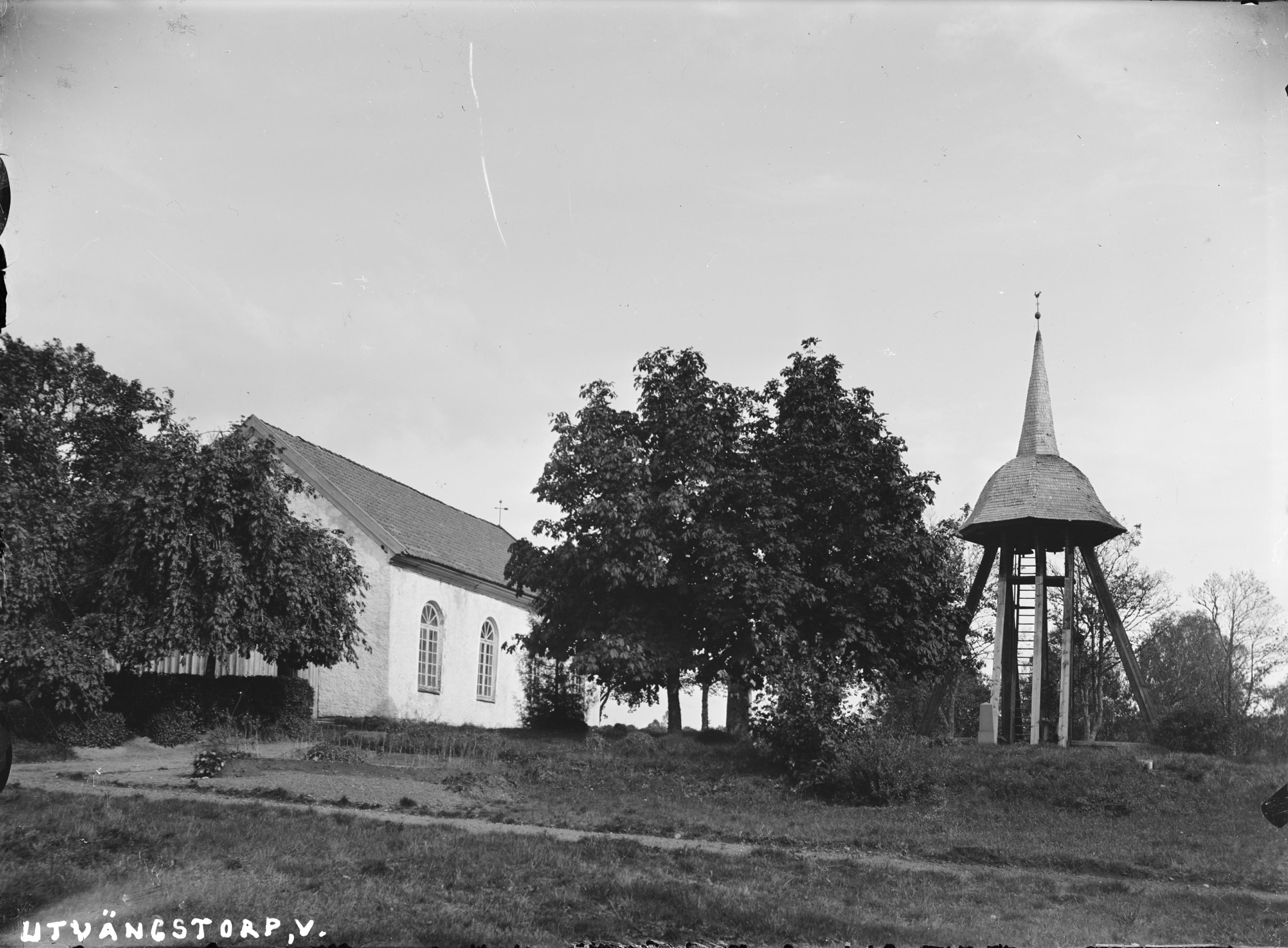 Kyrkan och klockstapeln från sydväst. Snabbinv.