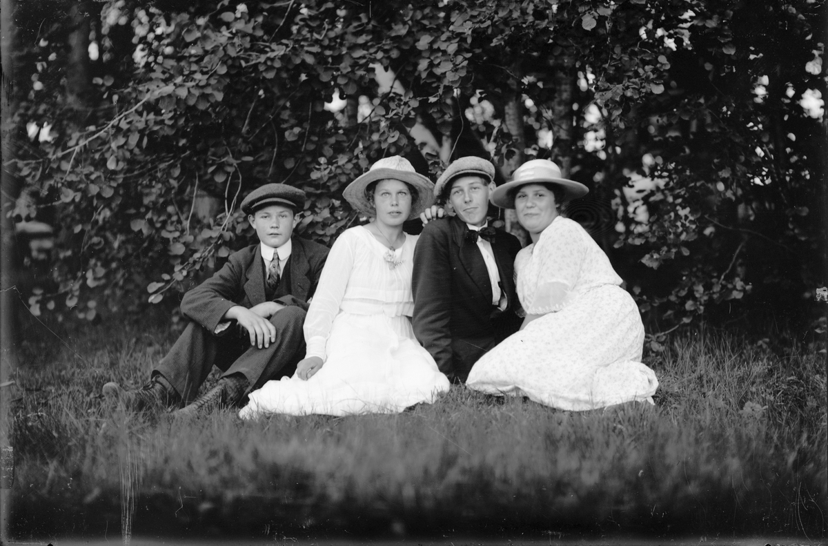 Två par med hattar och kepsar på.