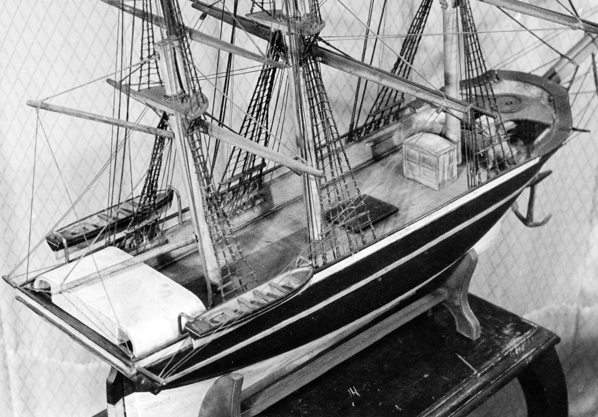Modell av skeppet "Minnet". Skepp byggt av Gefle 1836, 249 sv. 143 nyläst, 493 ton. Redare: D. Elfstrand o Co Gefle.