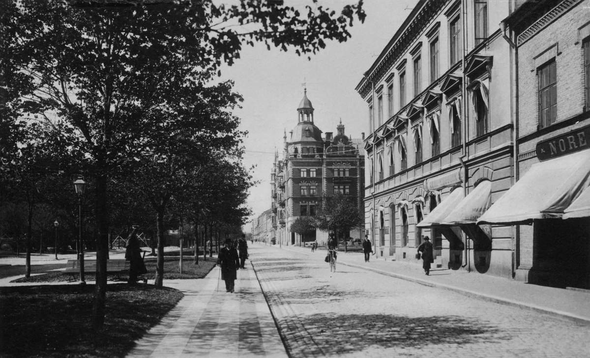 Till vänster kvarteret Kustos därefter kvarteret Gevalia (omkring 1900).