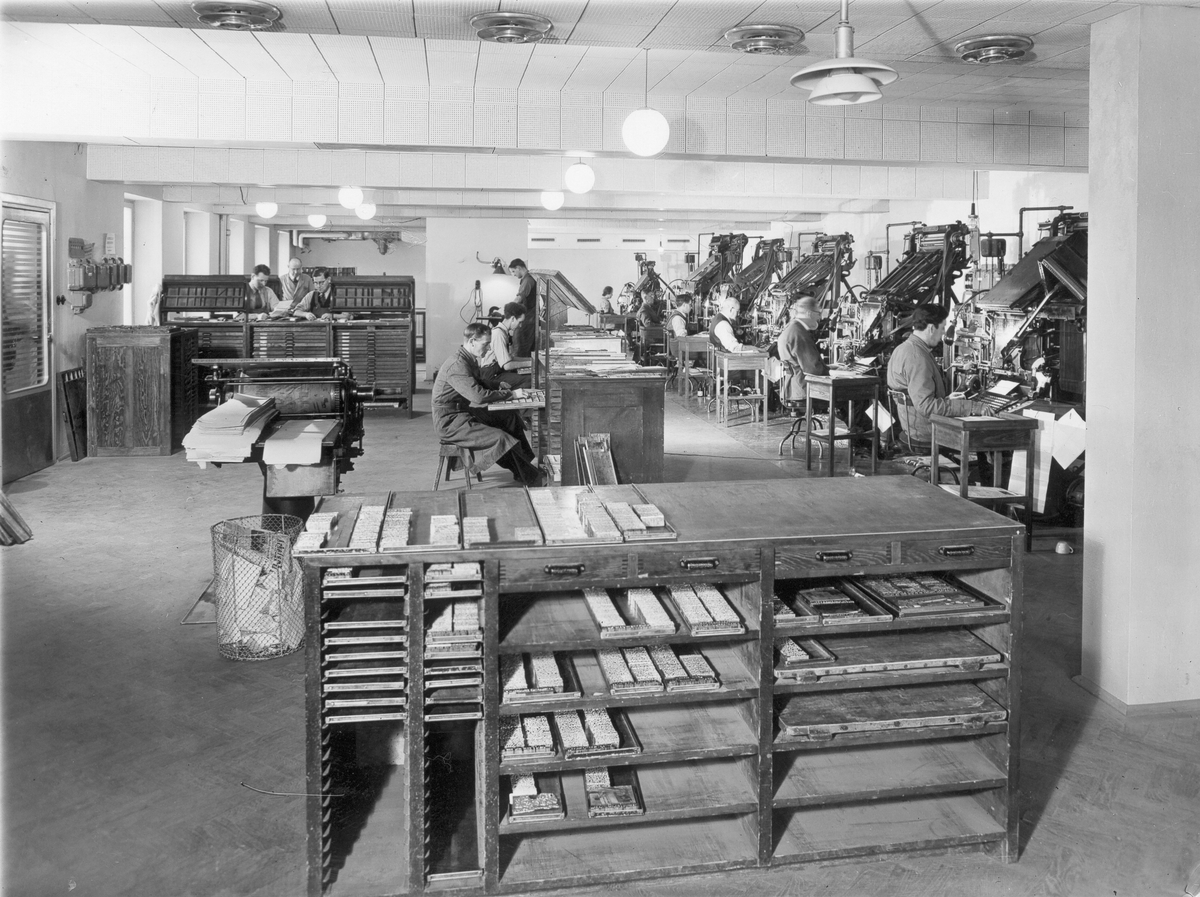 Interiör från sätteriet på Arbetarbladet.