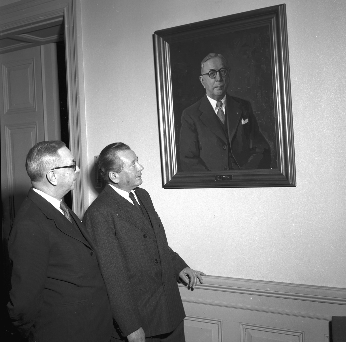 Läroverket (Vasaskolan). Tavla avtäckes. 16 februari 1955.