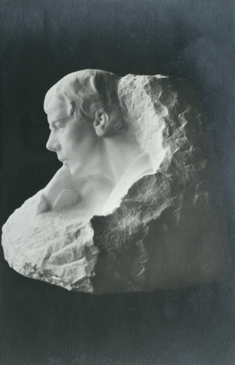 Skulptur av John Runer. "Grubbel" i marmor 1914. 40 x 42.