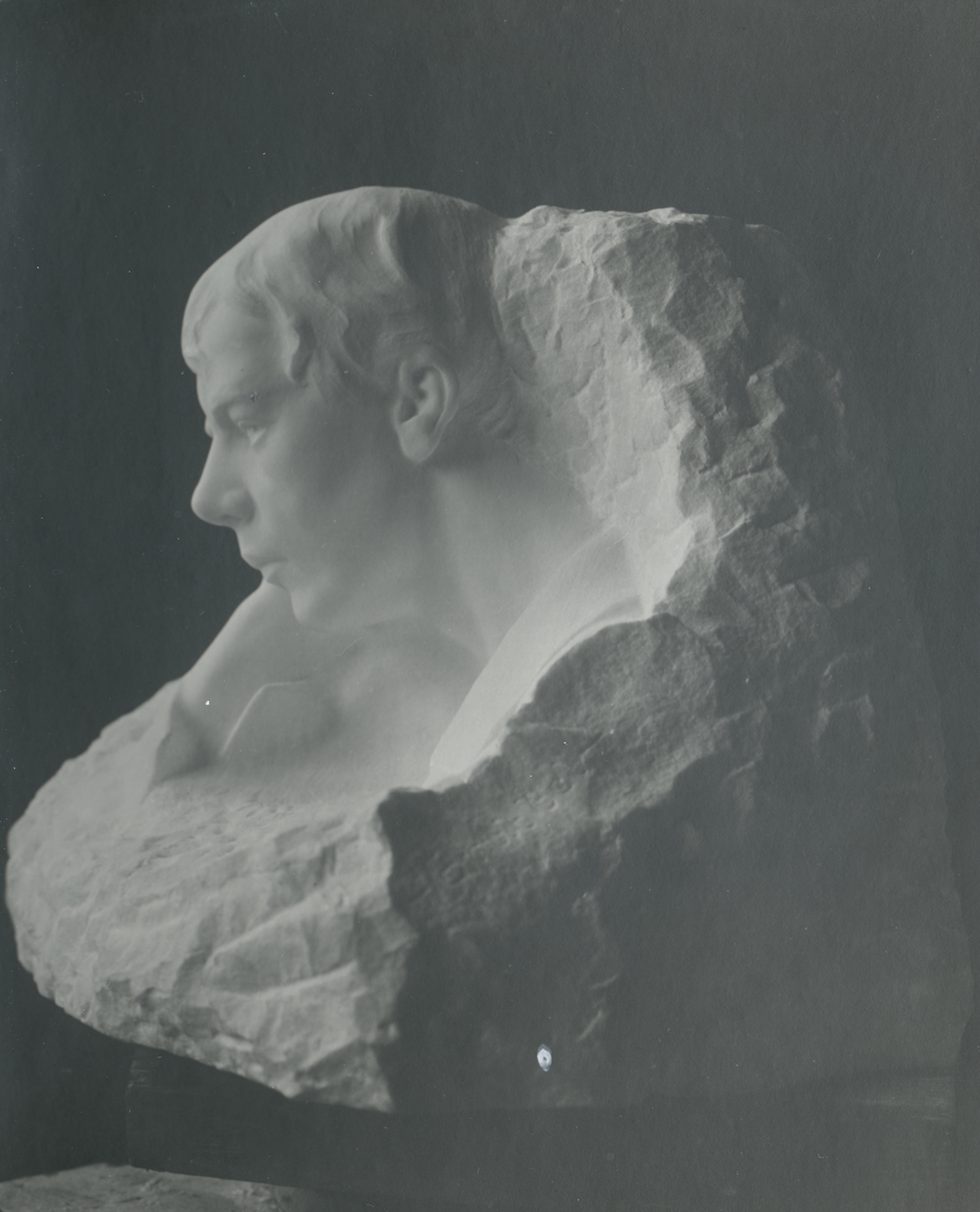 Skulptur av John Runer. "Grubbel" i marmor 1914. 40 x 42.