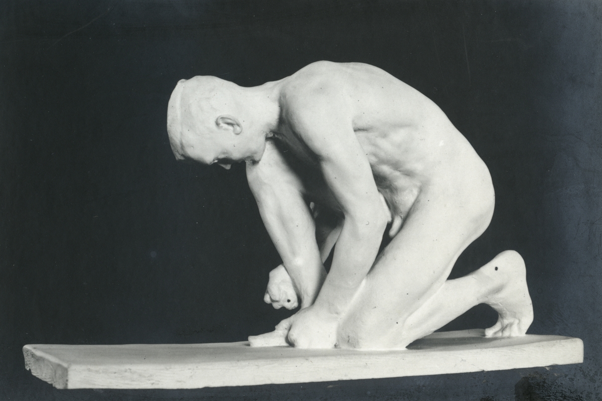 Skulptur av John Runer. Skiss till skridskospännare 1917. 50 x 25.