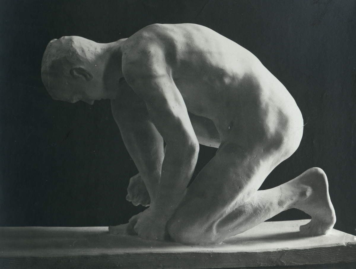 Skulptur av John Runer. Skiss till skridskospännare 1917. 50 x 25.