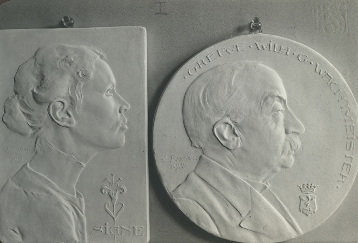Skulpturer av John Runer. Fru Signe Runer 1911 och Greve Wilhelm Wachtmeister 1912.