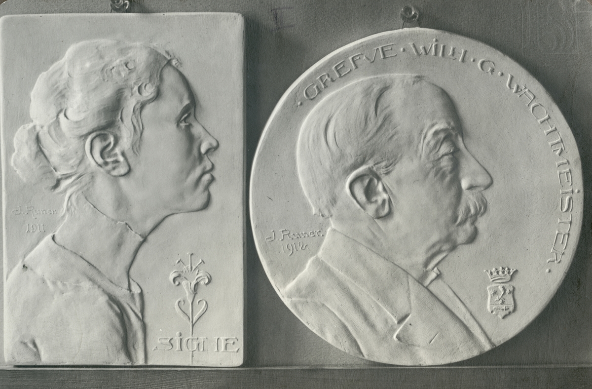 Skulpturer av John Runer. Fru Signe Runer 1911 och Greve Wilhelm Wachtmeister 1912.