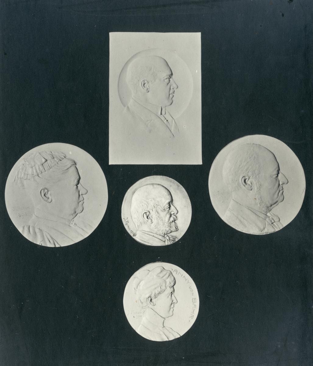 Skulpturer av John Runer. Kapten Hakon Wijk 1918. Fru C. Engwall 1898. Professor Richard Andersson 1910. Grosshandlare W. T. Engwall 1898. Fröken Anny von Bahr 1911.