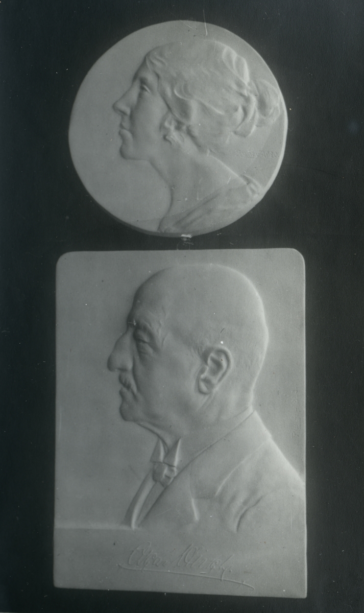 Skulpturer av John Runer. Fröken Gertrud Ekberg och Ingenjör Oscar Hirsch 1920.