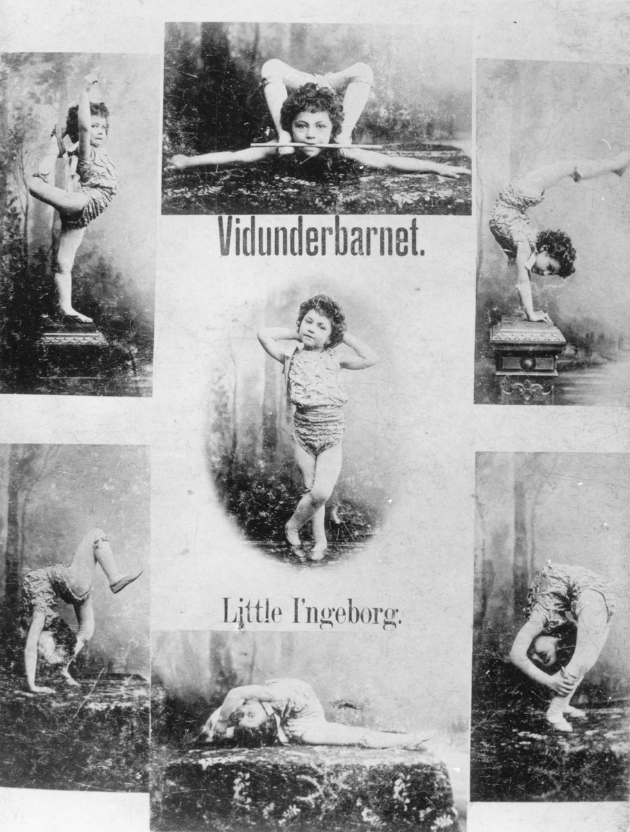 Affisch föreställande vidunderbarnet La Bella Ingeborg (Little Ingeborg) i olika poser.
