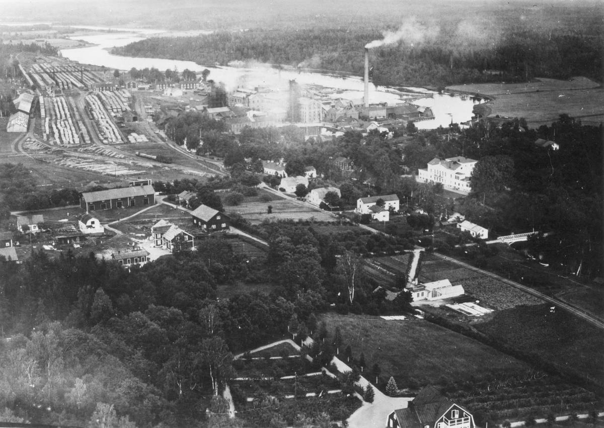 Flygfoto över sulfitfabriken i Hammarby, Ovansjö socken.