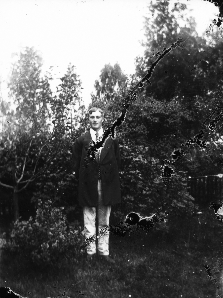 Man fotograferad i trädgården.