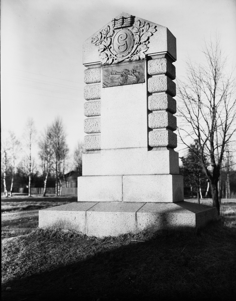 Minnesstenen på Fredriksskans. En Skans till skydd för staden anlades 1716-17. Bestyckningen togs bort 1863 och revs 1902. Fredriksskanshamnen invigdes 1905 och samma år avtäcktes på platsen en sten till minne av befästningen.